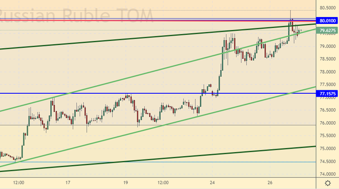 Покупка: нет. Кто в позиции от 73.70, 74.60 и 75.40, перенесите стоп на 76.20. Цель: 82.00 (120.00?!).