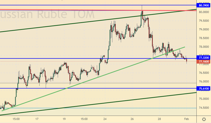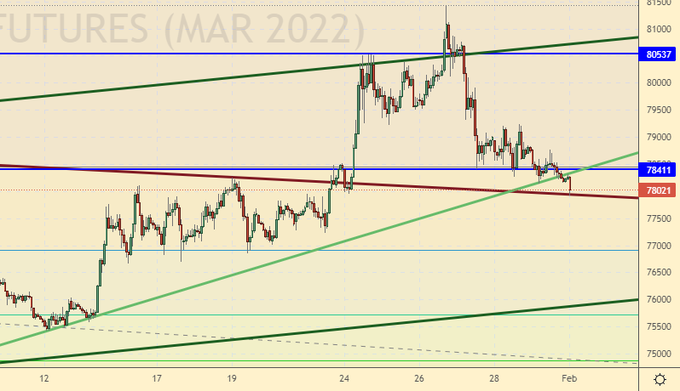 Покупка: нет. Кто в позиции от 76600, 76000 и 75700, держите стоп на 77200. Цель: 82500 (120000?!).