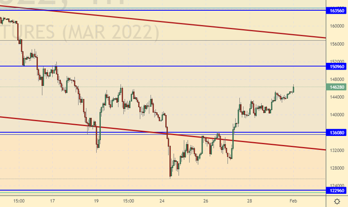 Продажа: при подходе к 155000. Стоп: 165000. Цель: 105000.