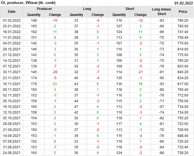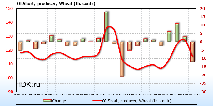 За неделю разница между длинными и короткими позициями производителей сократилась на 7.3 тыс. контрактов.