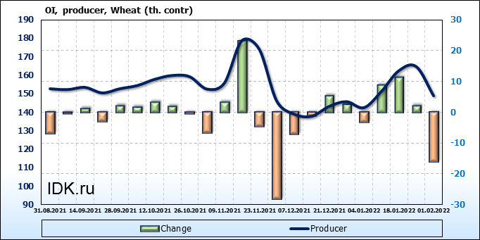 Открытый интерес производителей упал на 16 тыс. контрактов. Объем контрактов, направленных на хеджирование, составляет 148 835 штук. Деньги производителей в течение прошлой недели уходили с рынка не видя привлекательности в текущей ситуации.