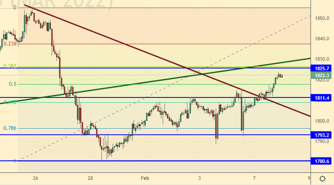 Несмотря на рост к 1825 рынок не утратил технической возможности к снижению. Текущий район может стать сильным сопротивлением, но если он будет пройден, нам придется вернуться к любимой нашей песне о росте стоимости золота выше 2000 несмотря на возможный рост ставок ФРС.