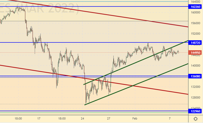 Инвесторы ждут роста процентной ставки в пятницу, что должно оказать давление на рынок акций. Инвестиционный климат можно считать испорченным на долгое время, но и внутренних резервов России хватит для поддержания ситуации на приемлемом уровне, то есть, практически все голубые фишки будут показывать прибыль и в 2022-м году. При таких ценах на нефть катастрофа (падение индекса на 70% и более) исключена.