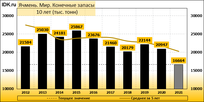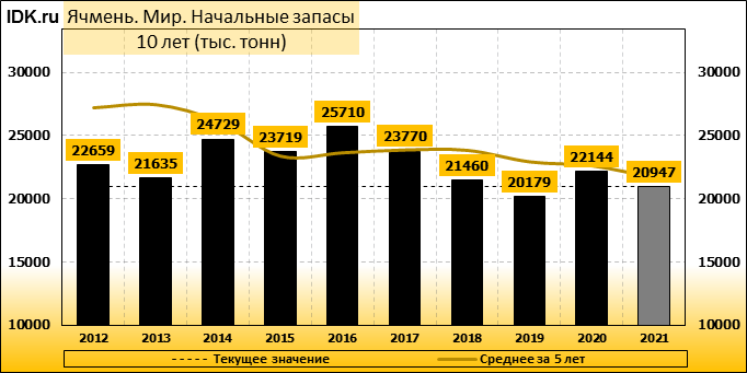 Согласно февральскому отчету МСХ США, прогноз мирового производства ячменя в 2021/22 году снижен на 1,26 млн. тонн по сравнению с прошлым месяцем до 145,79 млн. тонн. Это на 14,25 миллиона тонн меньше, чем оценка для 2020/21 года. Сокращение ожидаемого производства ячменя произошло в основном за счет Ирака и Сирии, прогнозы для которых снижены на 0,60 и 0,45 млн. тонн соответственно. Прогноз мировой торговли ячменем при этом повышен с 34,038 до 34,113 млн. тонн. Мировые конечные остатки прогнозируются на уровне 16,664 млн. тонн.