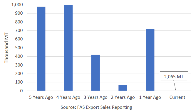В 2021/22 году Министерство сельского хозяйства США прогнозирует рекордное или почти рекордное производство кукурузы для основных экспортеров: Аргентины, Бразилии, Украины и США. В то время как мировая торговля, как ожидается, снова вырастет, с Китаем в качестве стабильного источника спроса на кукурузу из США, Южная Корея обратилась к альтернативным поставщикам, таким как Аргентина, которая в настоящее время не экспортирует кукурузу в Китай. Это само по себе проявилось всего в 7000 тонн зарегистрированного импорта кукурузы из Соединенных Штатов с начала года (октябрь-декабрь). Более того, отсроченные продажи в Южную Корею на данный момент являются самыми низкими как минимум за 5 лет и составляют всего 2000 тонн. Учитывая имеющиеся на данный момент данные, кажется, что тенденция к снижению доли американской кукурузы на рынке Южной Кореи может сохраниться в 2021/22 году.