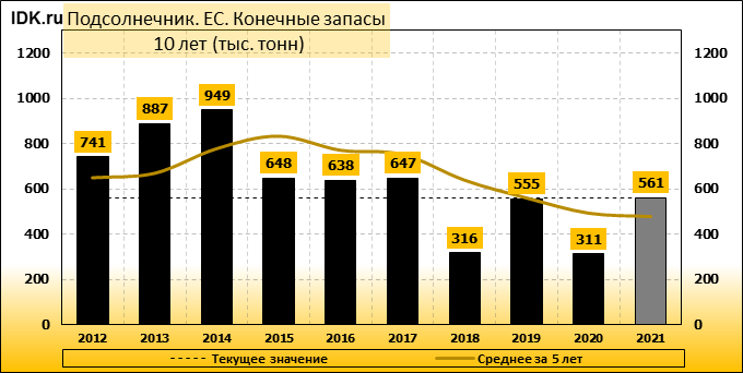 Конечные запасы: составят 561 тысячу тонн. Оценка с последнего отчета не изменилась.