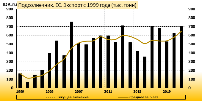 Экспорт: оценивается в 700 тысяч тонн. За месяц показатель не претерпел изменений.