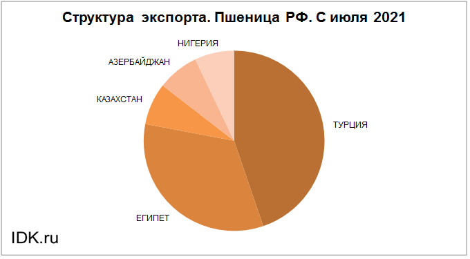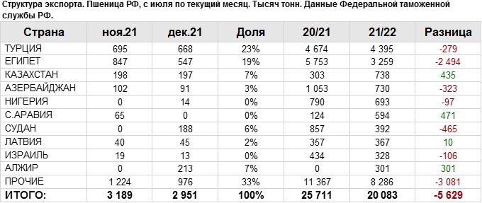 Структура экспорта пшеницы из России за декабрь 2021 года