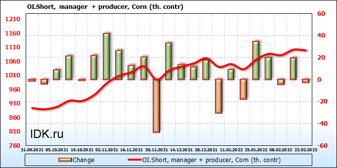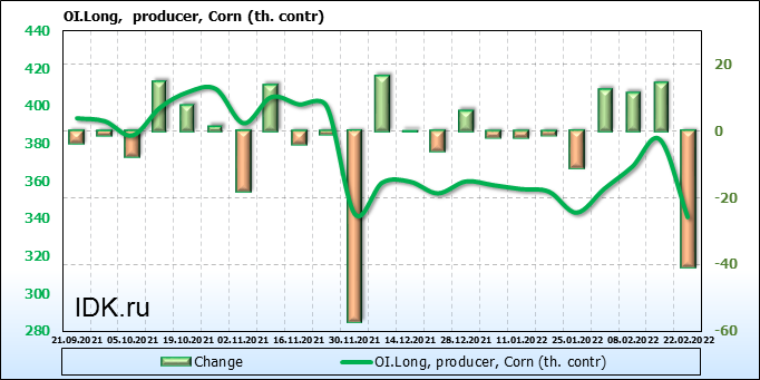Открытый интерес производителей упал на 41 тыс. контрактов. Объем контрактов, направленных на хеджирование, составляет 1 401 820 штук. Деньги производителей в течение прошлой недели уходили с рынка не видя привлекательности в текущей ситуации.