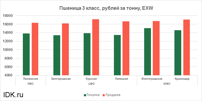 За прошедшую неделю с 21.02.2022 по 25.02.2022 средняя цена на пшеницу 3-го класса, согласно выставленным заявкам трейдеров, выросла по всем округам на 175 рублей. Средняя цена составляет 15326 рублей за тонну.