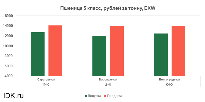 За прошедшую неделю с 21.02.2022 по 25.02.2022 средняя цена на пшеницу 5-го класса, согласно выставленным заявкам трейдеров, упала по всем округам на 169 рублей. Средняя цена составляет 13210 рублей за тонну.