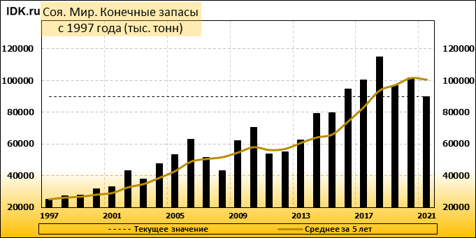 Конечные запасы: составят 89956 тысяч тонн. Оценка с последнего отчета снизилась на -3.1 процента.