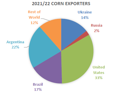 Рисунок 4. Экспортеры кукурузы 2021/22 МГ