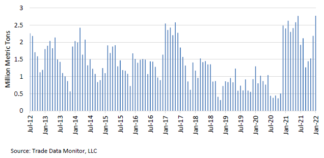 Австралия экспортировала 13,2 млн тонн пшеницы с начала года (июль-январь), а это означает, что для достижения пересмотренного прогноза экспорт должен составлять в среднем 2,7 млн тонн в месяц. Исторически 2,7 млн тонн были максимально высоким показателем за месяц, но с декабря 2020 года экспорт был на очень высоком уровне и превысил 2,7 млн тонн в январе. За последние пару лет на юге Австралии открылось несколько небольших портов. Дополнительные экспортные мощности открываются в Западной Австралии, что должно позволить ускорить темпы экспорта в последние 4 месяца торгового года. Отчеты крупных австралийских трейдеров показывают, что покупатели закупают объемы на больший период, чем обычно. Слоты для отгрузки в Австралии полностью забронированы на несколько месяцев вперед, и отгрузки пшеницы нового урожая уже бронируются.