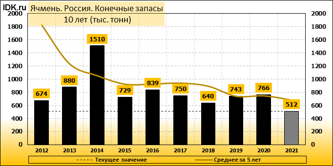 Конечные запасы: составят 512 тысяч тонн. Оценка с последнего отчета снизилась на -0.78 процента.