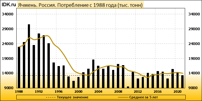 Потребление: показатель не изменился и составляет 13300 тысяч тонн.