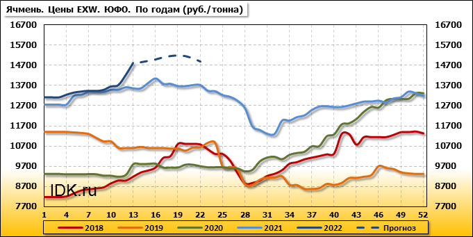 В Южном федеральном округе внутренние цены на ячмень выросли на 606 руб./т. и на данный момент составляют 14832 рубля за тонну.