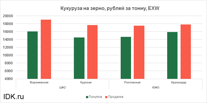 За прошедшую неделю с 28.03.2022 по 01.04.2022 средняя цена кукурузы на зерно, согласно выставленным заявкам трейдеров, упала по всем округам на 928 рублей. Средняя цена составляет 16741 рубль за тонну.