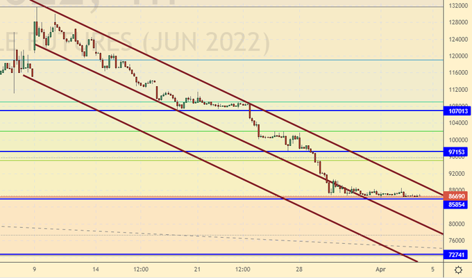 Рынок не смог закрепиться ниже 1000.0. Быки снова поднимают котировки в расчете на создание импульса, который приведет нас к 1300.0, возможно к 1500.0. С текущих уровней возможен шорт, весна все-таки.