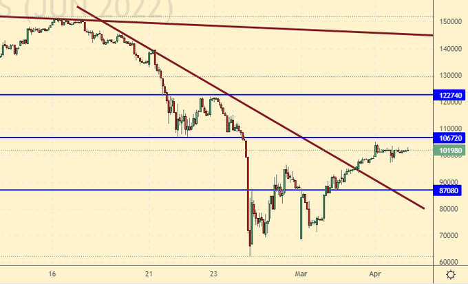 Покупка: нет. Кто в позиции от 90000, держите стоп на 91000. Цель: 120000?