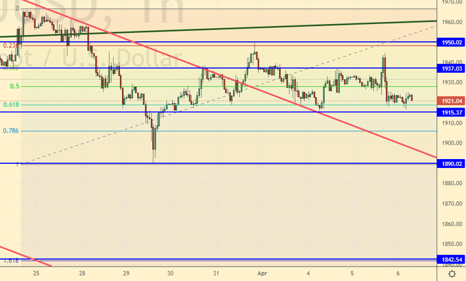 Индекс доллара укреплялся вчера, что и привело к ослаблению позиций золота. Однако, как мы видим, пока продавцы не могут закрепиться ниже 1900, а это оставляет шансы на рост.
