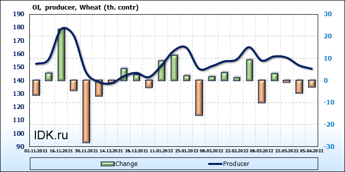 Открытый интерес производителей упал на 3 тыс. контрактов. Объем контрактов, направленных на хеджирование, составляет 148 800 штук. Деньги производителей в течение прошлой недели уходили с рынка не видя привлекательности в текущей ситуации.