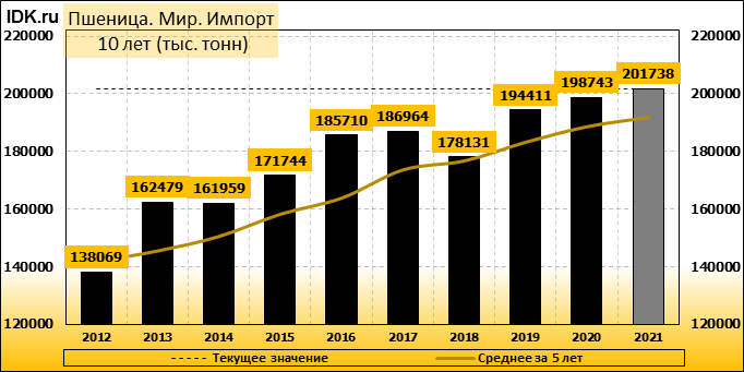 Импорт: составит 201738 тысяч тонн. Значение по прошествии месяца упало на -1.51 процента.