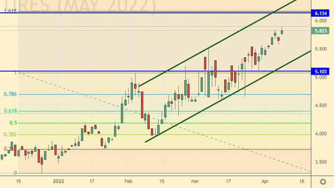 Сценарий роста: рассматриваем майский фьючерс, дата экспирации 12 мая. Перспектив дешевого топлива в Европе нет. Откроем лонг.