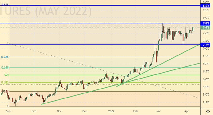 Рынки зерновых культур не торопятся падать. Отчет USDA, вышедший 8-го числа не показал никаких существенных изменений по валовому сбору пшеницы и кукурузы за сезон 21/22, который подходит к концу.