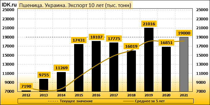 Экспорт: оценивается в 19000 тысяч тонн. За месяц показатель упал на -5 процентов.