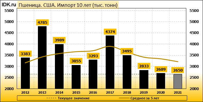 Импорт: составит 2650 тысяч тонн. Значение по прошествии месяца не изменилось.
