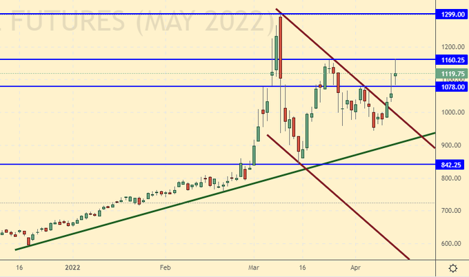 Покупка: нет. Кто в позиции от 1060.0, перенесите стоп на 1010.0. Цель: 1500.0.