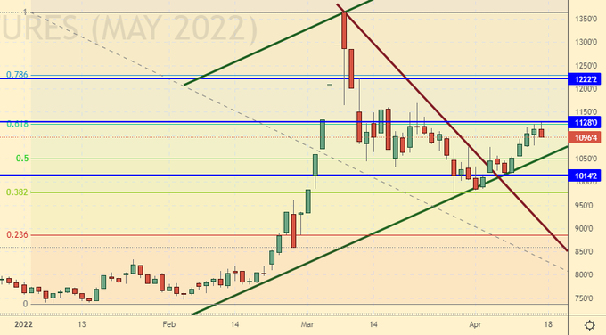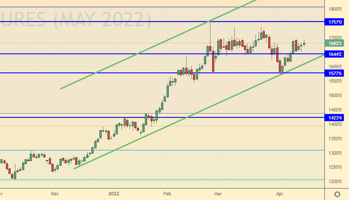 Сценарий роста: рассматриваем майский фьючерс, дата экспирации 27 апреля. На рынке газа будет хороший спрос. Продолжаем держать лонги.