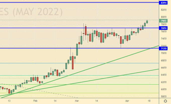 Страны производители зерновых взяли курс на ограничение собственного экспорта. Это поддерживает текущие цены. Если мораторий на экспорт зерновых будет продлен после начала поступления с полей этим летом нового урожая, то это явно приведет к сильному разогреву рынка и текущие уровни будут перекрыты минимум на 30%, а скорее, на все 50.
