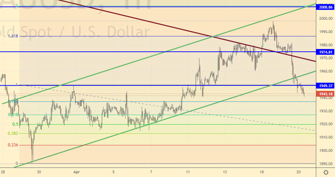 Продажа: сейчас и при подъеме к 1970. Стоп: 1990. Цель: 1800.