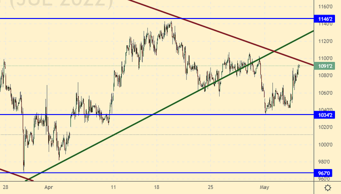 На рынке зерна основным событием остается прогноз USDA, выхода которого ждем 12-го мая. Пока нет причин для падения цен. Проблемы с удобрениями весной этого года могут стать действительно насущными уже этой осенью, что поставит под угрозу урожай сезона 23/24.