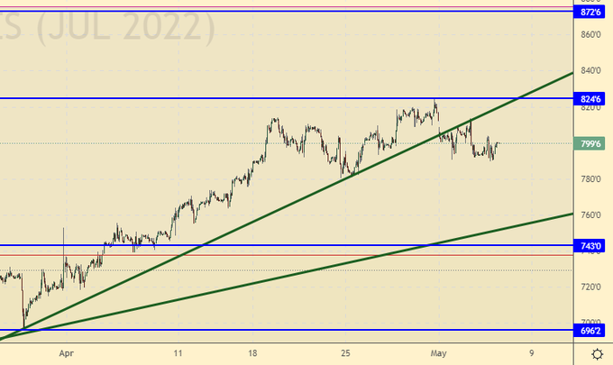 Рынок пока не желает двигаться к 870.0. Есть несколько дней для спекулятивных движений. Например, мы можем сходить к 750.0 после чего последует рост.
