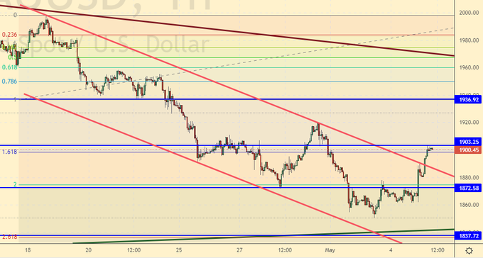 Продажа: при подходе к 1930. Стоп: 1960. Цель: 1840 (1740). Кто в позиции от 1950 и 1955, держите стоп на 1960. Цель: 1840 (1740).