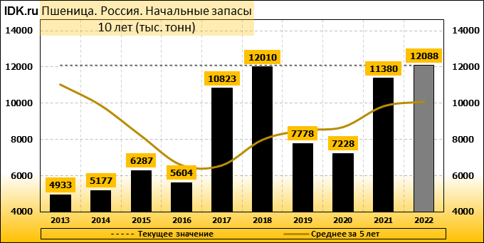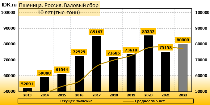 Валовый сбор: майская оценка сезона 22/23 составляет 80000 тысяч тонн. Потребление: оценивается в 42250 тысяч тонн. Экспорт: оценивается в 39000 тысяч тонн. Импорт: составит 300 тысяч тонн. Конечные запасы: составят 11138 тысяч тонн.