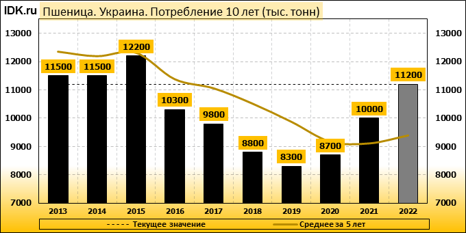 Валовый сбор: майская оценка сезона 22/23 составляет 21500 тысяч тонн. Потребление: оценивается в 11200 тысяч тонн. Экспорт: оценивается в 10000 тысяч тонн. Импорт: составит 100 тысяч тонн. Конечные запасы: составят 6012 тысяч тонн.