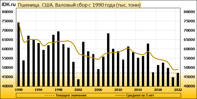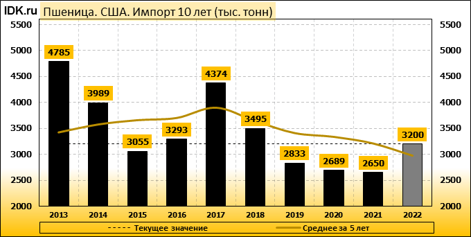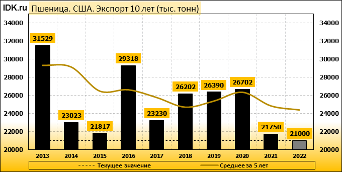 Валовый сбор: майская оценка сезона 22/23 составляет 47050 тысяч тонн. Потребление: оценивается в 30210 тысяч тонн. Экспорт: оценивается в 21000 тысяч тонн. Импорт: составит 3200 тысяч тонн. Конечные запасы: составят 16838 тысяч тонн.