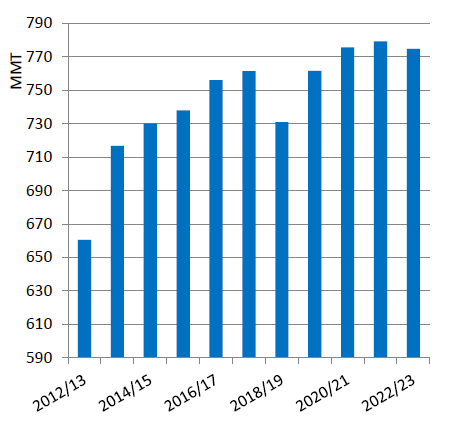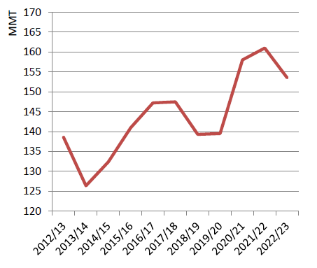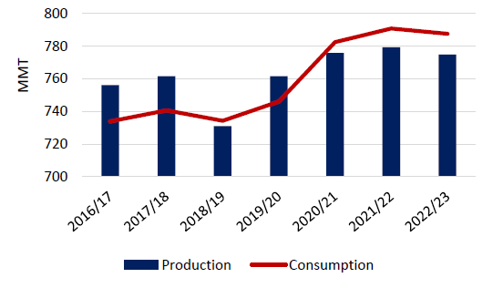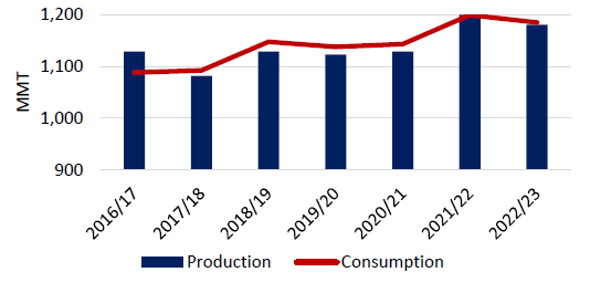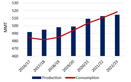 2022/23 — Потребление зерна превысит производство, остатки сокращаются