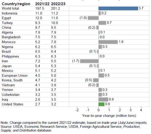 Рисунок 11. Изменение импорта пшеницы в 2022/23 торговом году, май 2022.