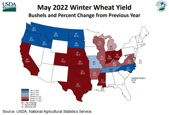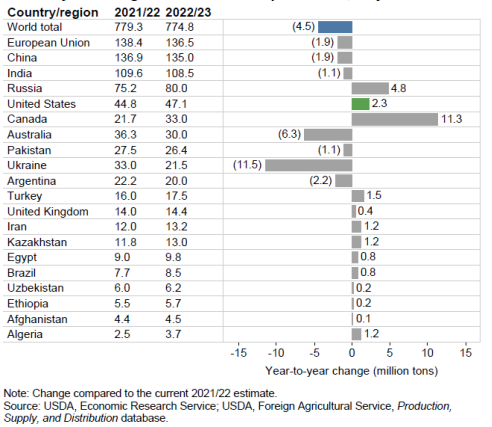 Рисунок 8. Изменение производства пшеницы в 2022/23 году, май 2022.