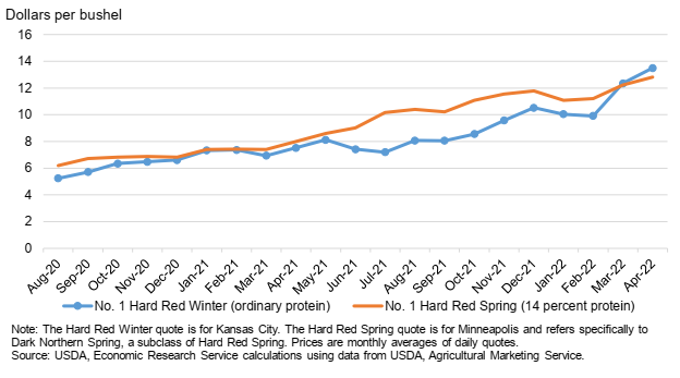 Рисунок 5. Цены на Hard Red Winter и Hard Red Spring в США, август 2020 г. – апрель 2022 г.