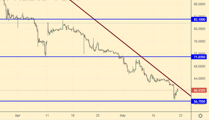 26-го мая заседание совета директоров Газпрома. Если дивидендов не будет, или они будут символическими, то рынок акций немедленно перейдет к снижению. На фоне хорошей выручки от продажи углеводородов, государству дивиденды не нужны, поэтому вряд ли мы увидим раздачу денег.