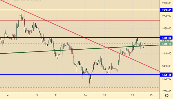 Рынок пока не может подняться выше 1865. Золото могло бы получить поддержку от падения американского фондового рынка, но оно пока приостановилось. Лето начнется уже через семь дней, все катаклизмы будут сдвинуты на осень. Золото может продолжить терять в цене.