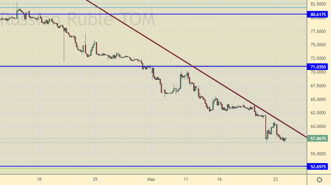 Фондовый рынок откровенно грустит, особенно это касается нефтяных компаний и Сбербанка. Газпром будет смотреться бодрячком до заседания совета директоров 26-го мая. Будут дивиденды или нет, не важно, Газпром должен упасть, так как компания стремительно теряет рынки сбыта.