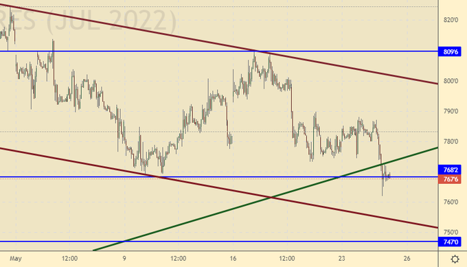 Рынок продолжает оставаться высоко и фундаментальных предпосылок для падения мы можем не получить. USDA дали в мае оптимистичный прогноз, но с ним согласны далеко не все. Вряд ли кто-то в этом сезоне будет хотя бы рассуждать о том, что мы вернемся куда-то на 500.0. Затраты фермеров выросли на 30% и это минимальные оценки.