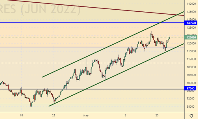Продажа: при подходе к 130000. Стоп: 132000. Цель: 80000 (50000).